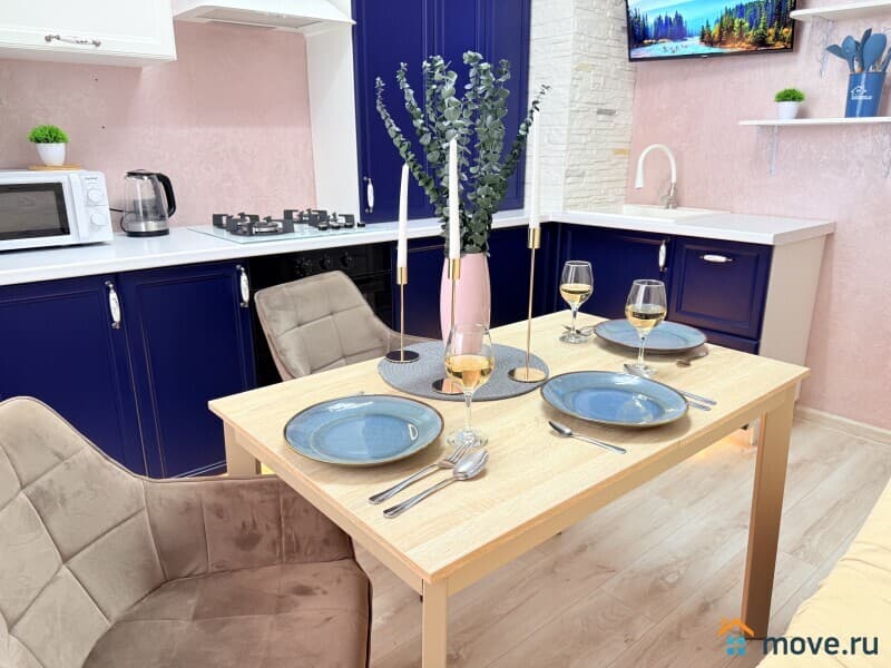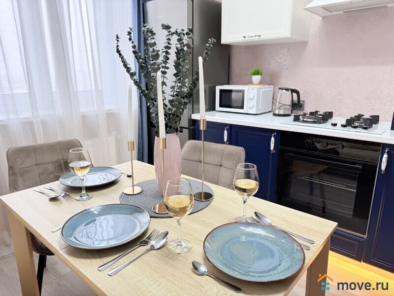 - кухня с новой посудой, варочной поверхностью, микроволновкой и чайником;